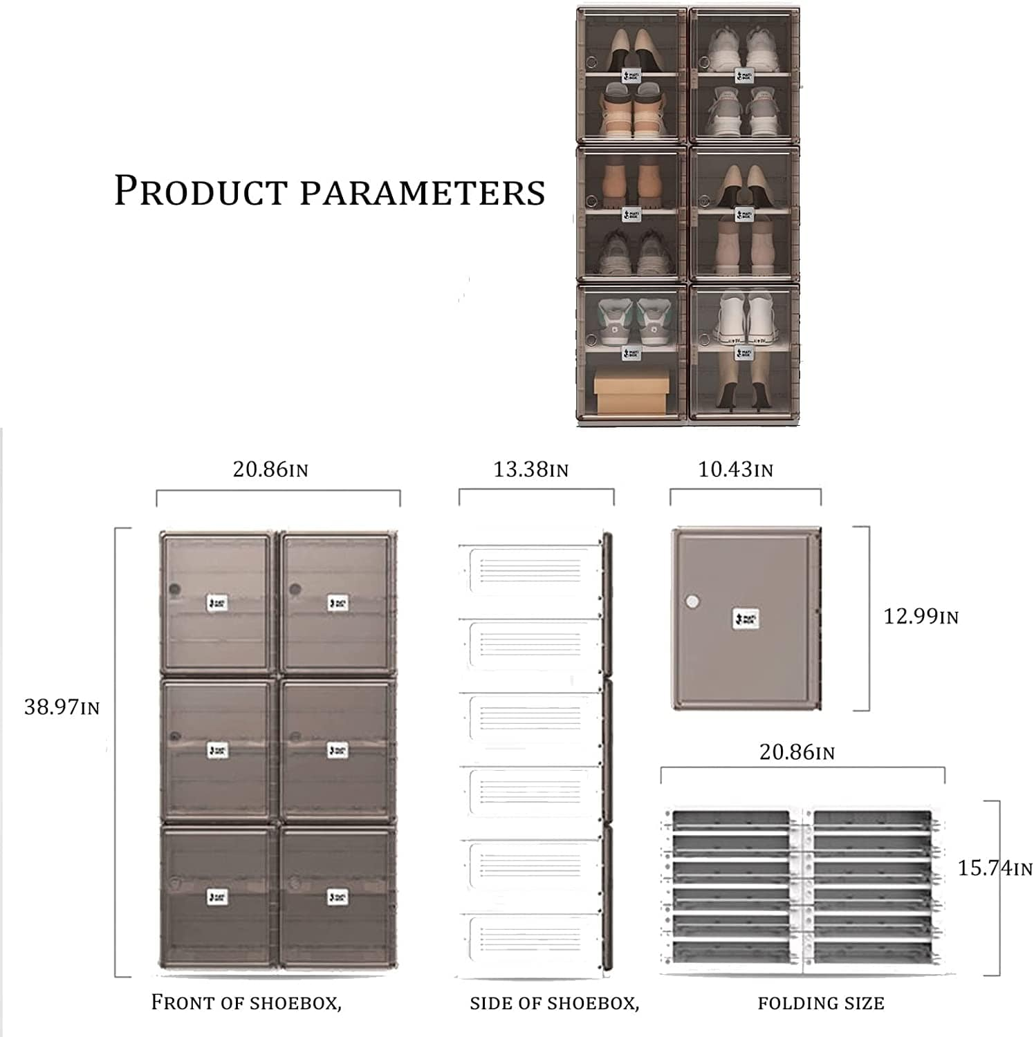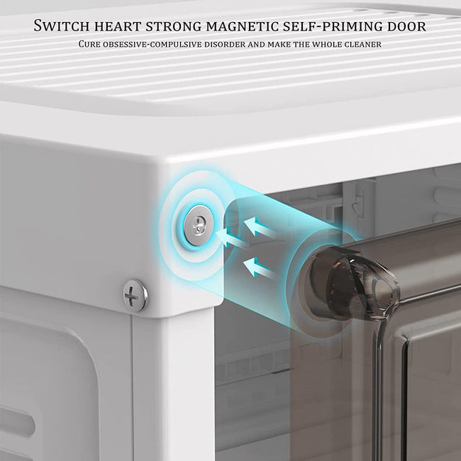• CONVENIENT DESIGN: The transparent design allows you to find the shoes without opening them and simply open and remove them. The shoe box is made of environmentally friendly PP, PET material, which is strongly magnetic, and aluminum alloy.