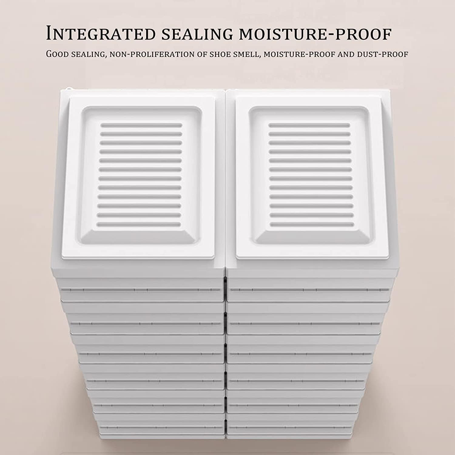• LIGHT-PROOF DESIGN: Dust and residue accumulation are the leading causes of shoes fading or warping when not in use. The clear door frame folding shoe box offers a secure storage environment. Our shoe rack’s body features a light-blocking design that prevents your shoes from turning yellow.