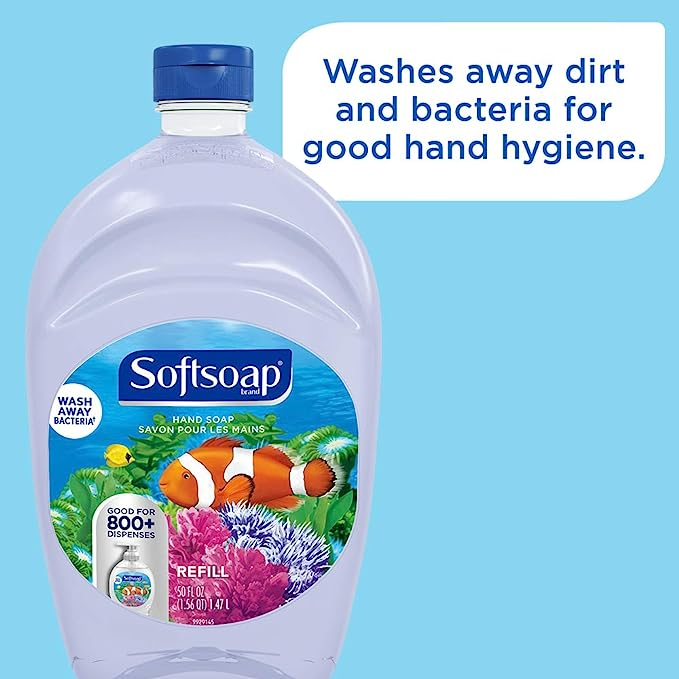 Bask in the light scent of Softsoap Liquid Hand Soap, Aquarium Series. Wash away dirt and bacteria with this hand wash for good hand hygiene (health care agencies recommend washing hands in warm water for at least 20 seconds to wash away dirt and bacteria). This fresh formula features your favorite fish. This hand soap formula helps retain skin’s natural moisture. This soap is perfect for the bathroom and kitchen. Enjoy the delightful and clean fragrance of Softsoap Aquarium Series, and bring a moment of joy to your day.