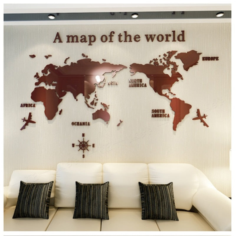 World Map Acrylic 3D Solid Crystal Bedroom Wall With Living Room Classroom Stickers Office Decoration Ideas